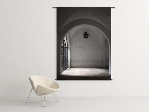 Wandkleed Puerta, deze foto gemaakt op onze inspiratie reis naar Sevilla. Het serene beeld in deze mooie tinten heeft door de diepte een mooi effect aan de wand.